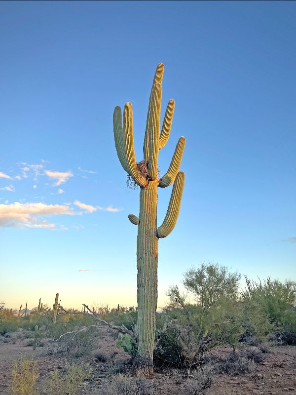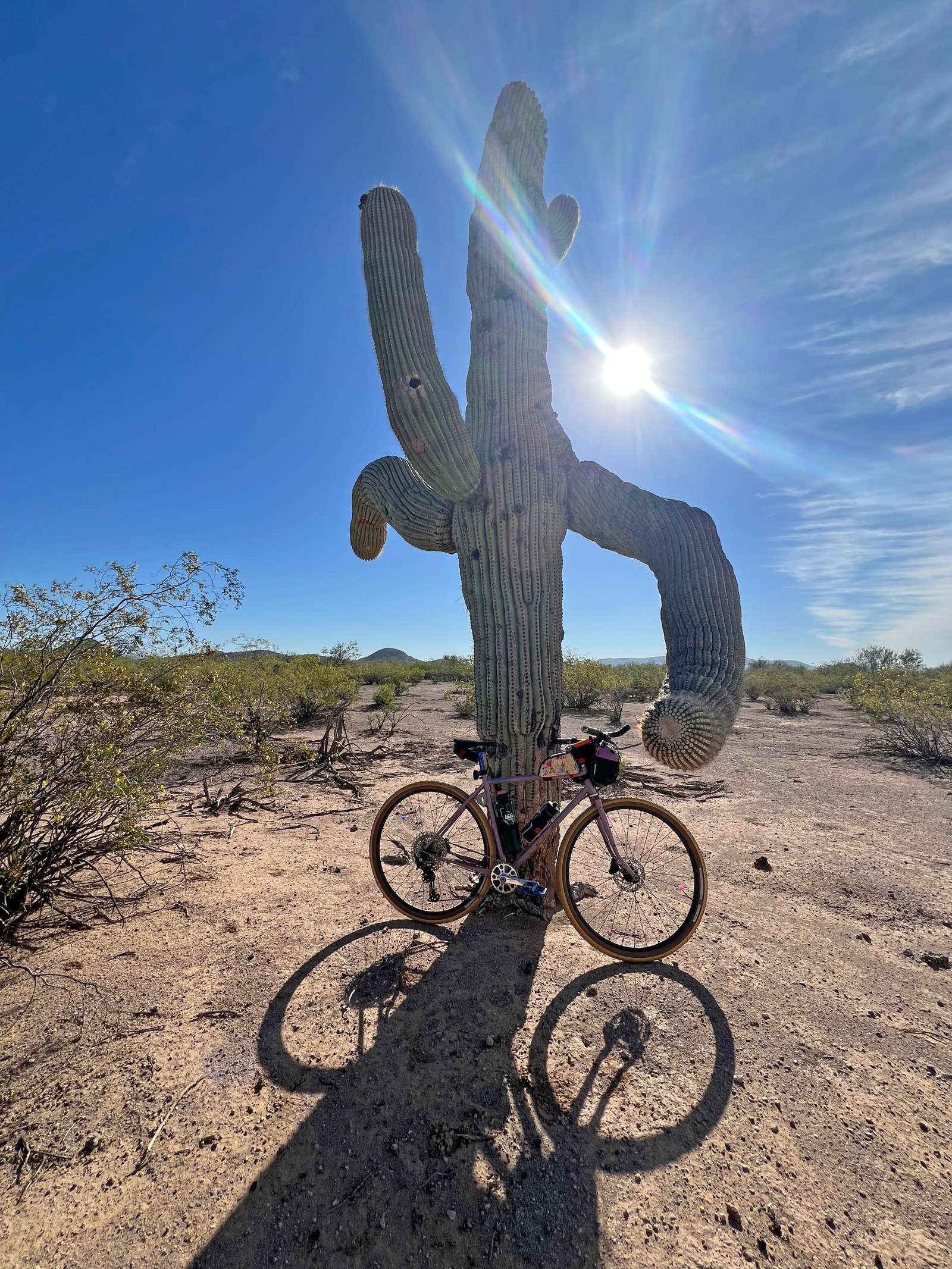 On Saturday, I took Pinky Tuscadero (a.k.a. “the Crust”) out for a ride. I headed toward Three Points, choosing as many gravel roads as I could along the way. Somewhere in the middle of all that dust and quiet, I came across a magnificent saguaro with the sassiest personality. Discoveries like this—true Sonoran surprises—fill my heart with joy and remind me why I love the desert.