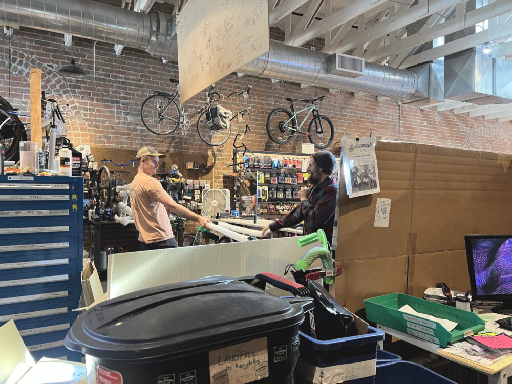 While we’re steady busy filling your orders and building your bikes, we like to find breaks for recreation during the day. On this particular day, Toby and Jake decided to sword fight with pieces of packing foam. I don’t know who won, but it’s all in a day’s work and will certainly happen again around here.