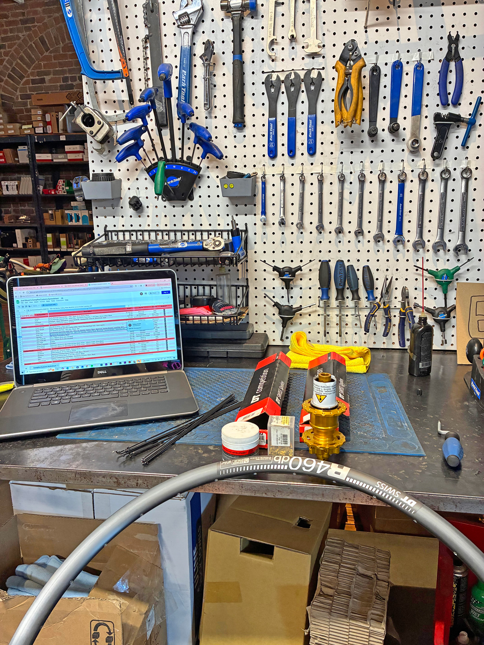 This week I built a wheel set for a midnight special build we are doing. Dt swiss R460 DB, gold nipples, double butted spokes and a sweet gold onyx hub. If you haven’t had the chance to feel one of these hubs in your hand, I’d highly recommend it. These hubs have a spray clutch making them completely silent and have the one of the fastest engagements of all the hubs on the market. I’ve been lucky enough to build a few of these and I am always in awe of the quality.