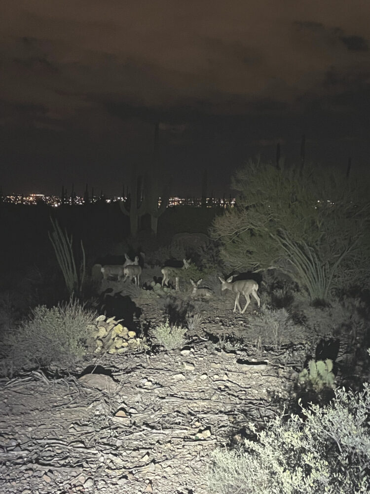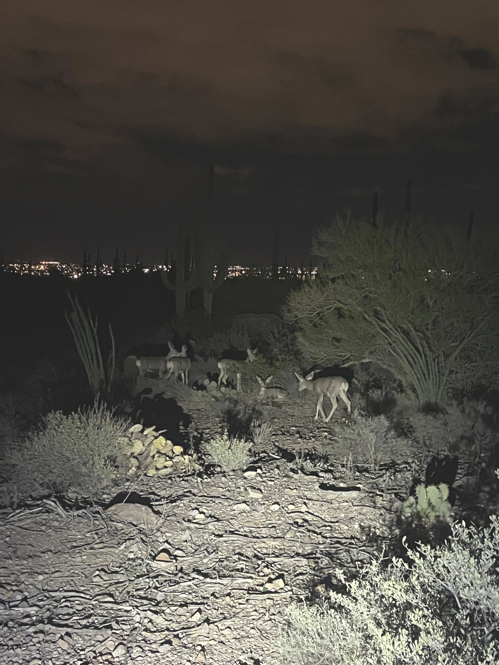 Could it be a mountain lion, a bobcat, the elusive Jaguar, or some Javelina? To my delight it was a huge group of deer! After I stopped and they decided I wasn’t a threat they all chilled out and I got a good chance to observe them munching on the flora and resting. My favorite was the one that plopped down in the middle.