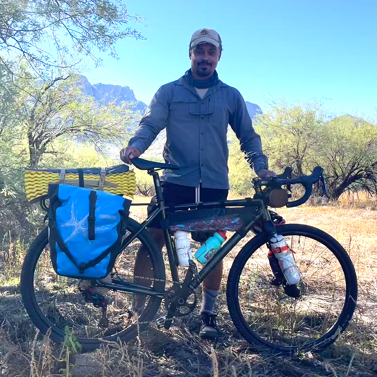 Victor’s Trek, featuring REI Panniers, Voile Straps and a Campfire Cycling Cap
