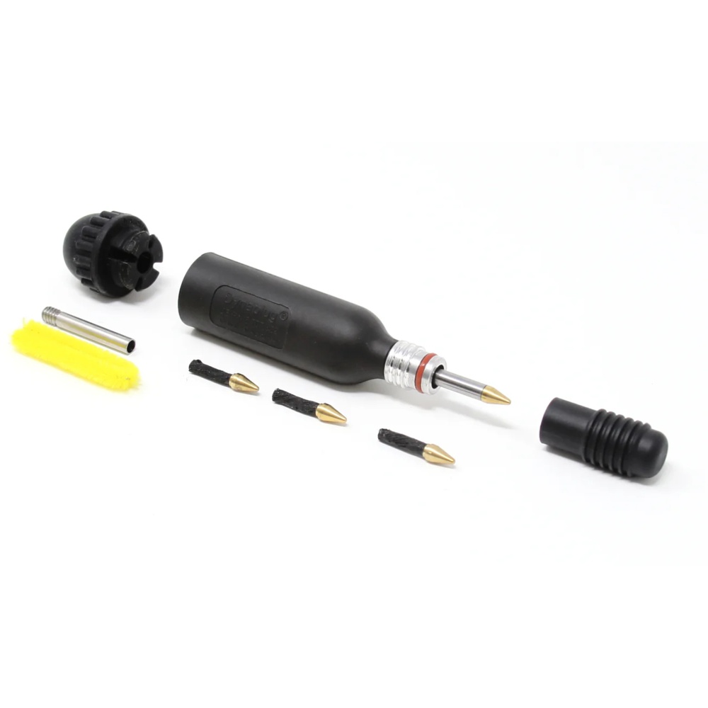 The DynaPlugger™ is a simple, rugged, rad way to repair your tubeless tire. Just find the puncture, align the tool, push into puncture, pull out and the plug stays in place. Now you’re ready to get back to shredding!