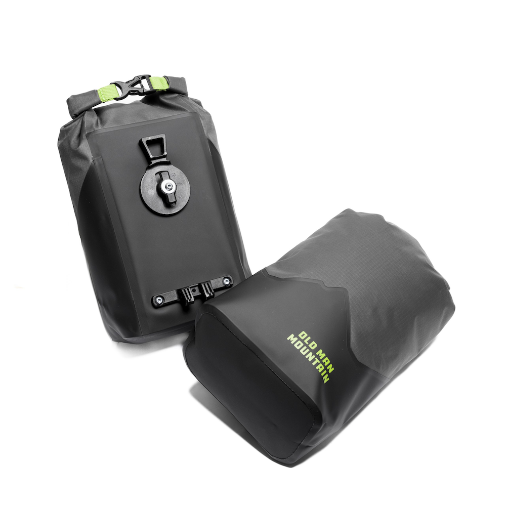 These quick detach fork packs (or any 3-pack mount) are ready for everything! Sunshine or rain, your gear will stay dry and protected in these 100% waterproof, TPU fabric panniers with welded seams and Hypalon reinforcements.