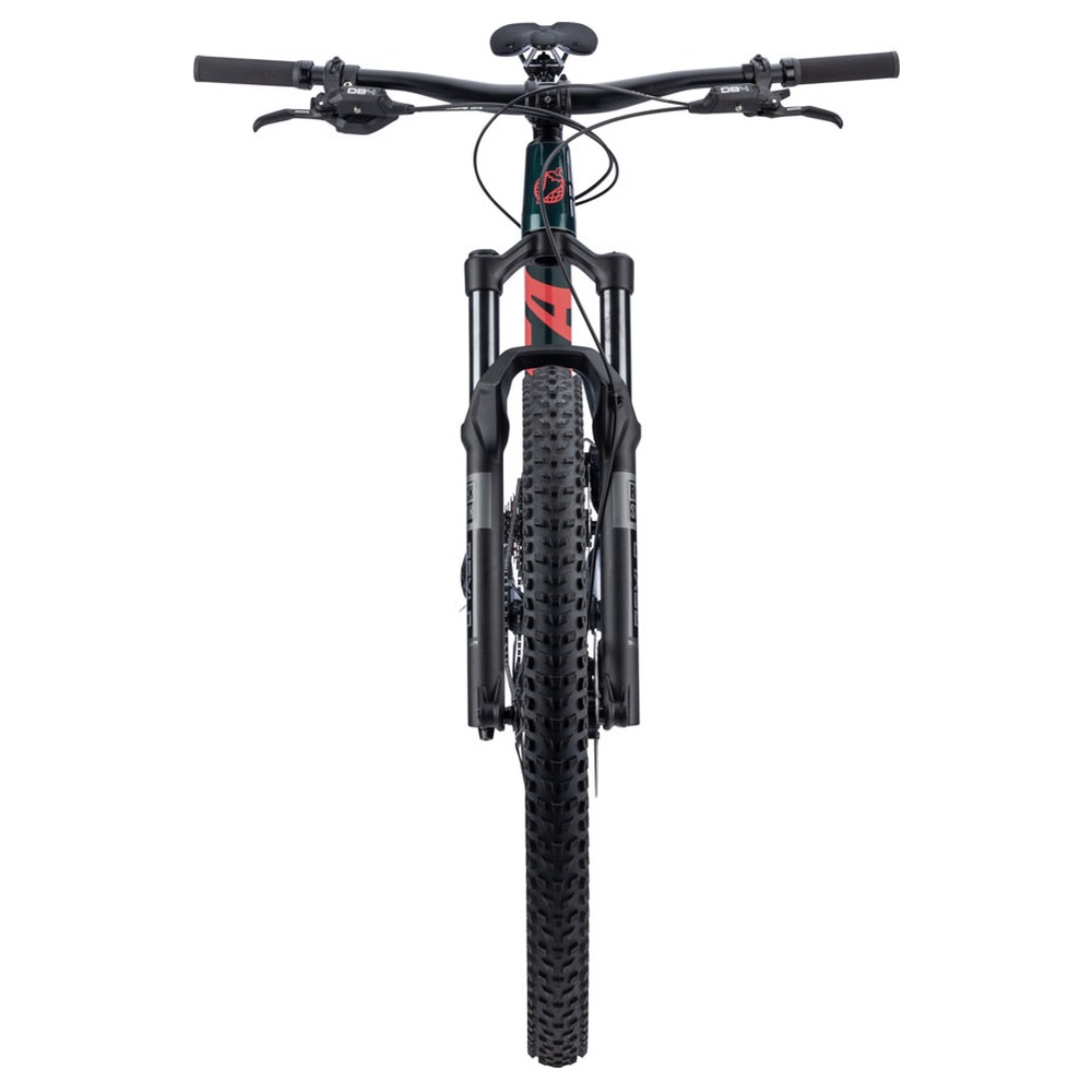 Aggressive trail geometry with short chainstays and long front-center provide agility and stability on the trail