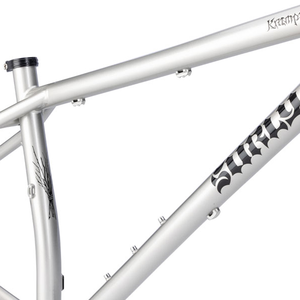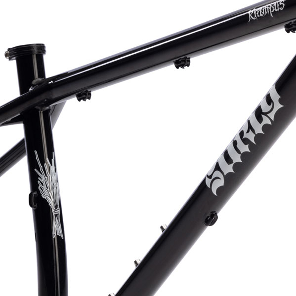 Krampus is kind of like the opposite of a mullet: long in the front and short in the rear. With a long toptube and compact chainstays, it takes trail-shredding abilities to the next level. A mullet may be business in the front, party in the back but Krampus makes partying its business.
