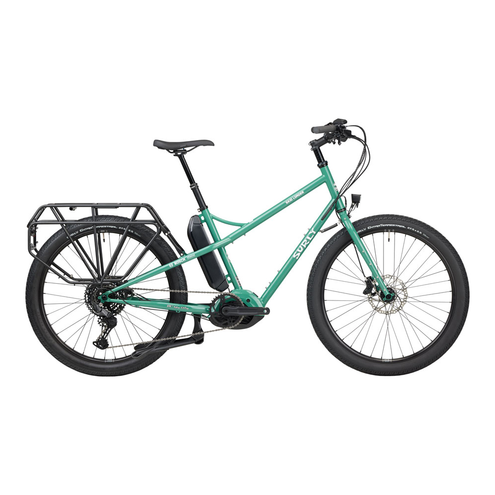 Comfortable and compliant under load, Skid Loader also enjoys cutting loose without cargo. Engineered to ride and feel like a regular bike, its 27.5” wheel platform provides abundant tire options you don’t get from cargo bikes rolling on smaller wheels. And because it’s a Surly, we gave it ample tire clearance and built it for commutes that go from bus stop to bandit trail. We also gave all three frame sizes adequate standover and a dropper post to fit riders of assorted shapes and sizes. Furnished with useful accessory barnacles and internal routing for just about everything, Skid Loader’s scaled-down and feature-packed cargo frame removes the roadblocks between you and riding whenever the hell you want.