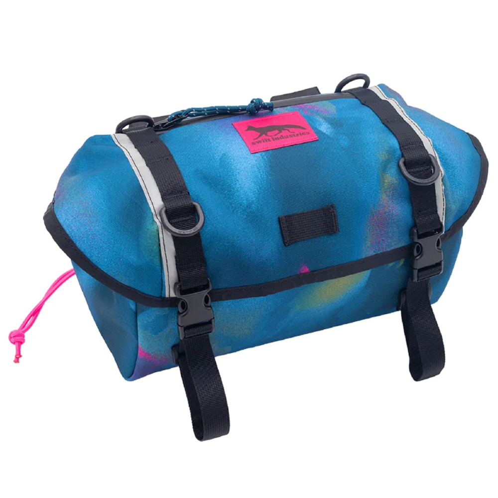 *Please be aware that the 9" Swift Straps for handlebar attachment pictured were voluntarily recalled for rider safety by Swift. This bag is now equipped with nylon buckle straps for secure installation. Visit Swift's recall page for more information: https://builtbyswift.com/voluntary-recall/