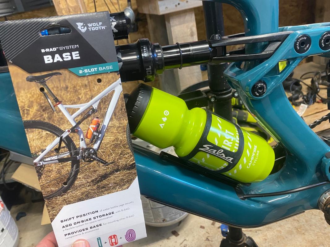 B-RAD, which stands for Bottle Relocation and Accessory Device, is a system for organizing on-bike accessory storage using bottle cage mounts. Used alone to shift bottle cage location for clearance, or combine with other B-RAD accessories to carry tools, tubes pumps or a 2nd bottle on downtubes.